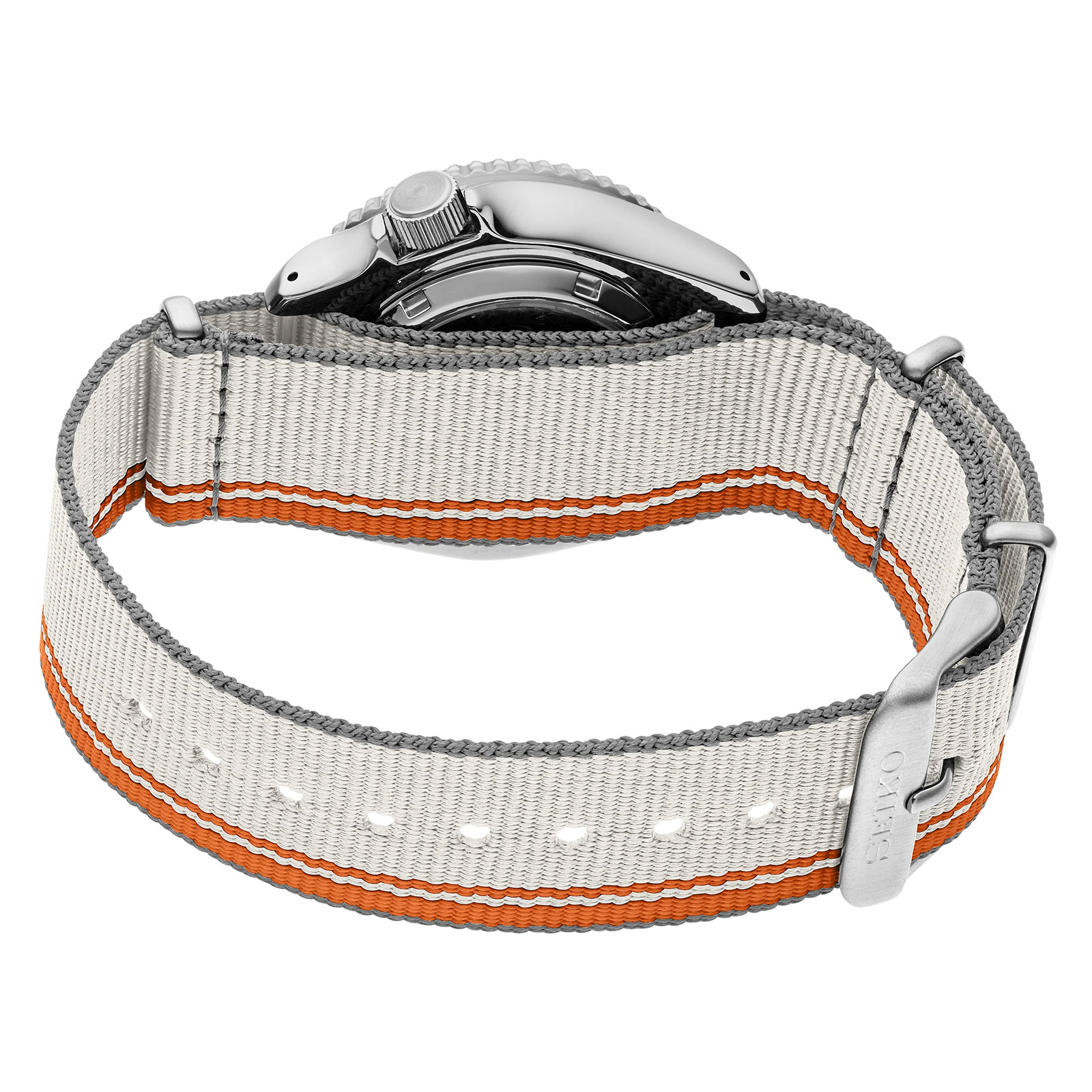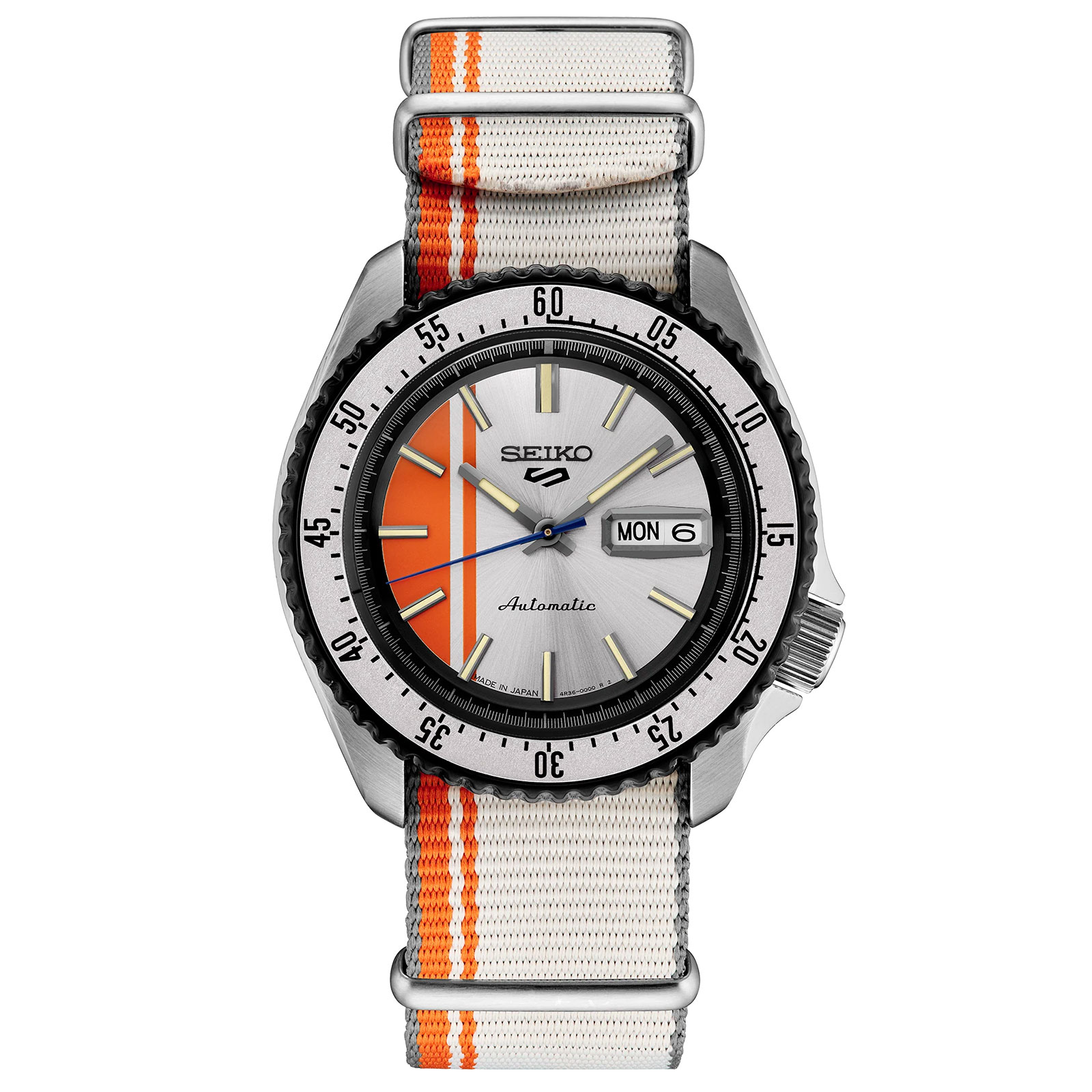 - Silver Dial with Orange Stripes