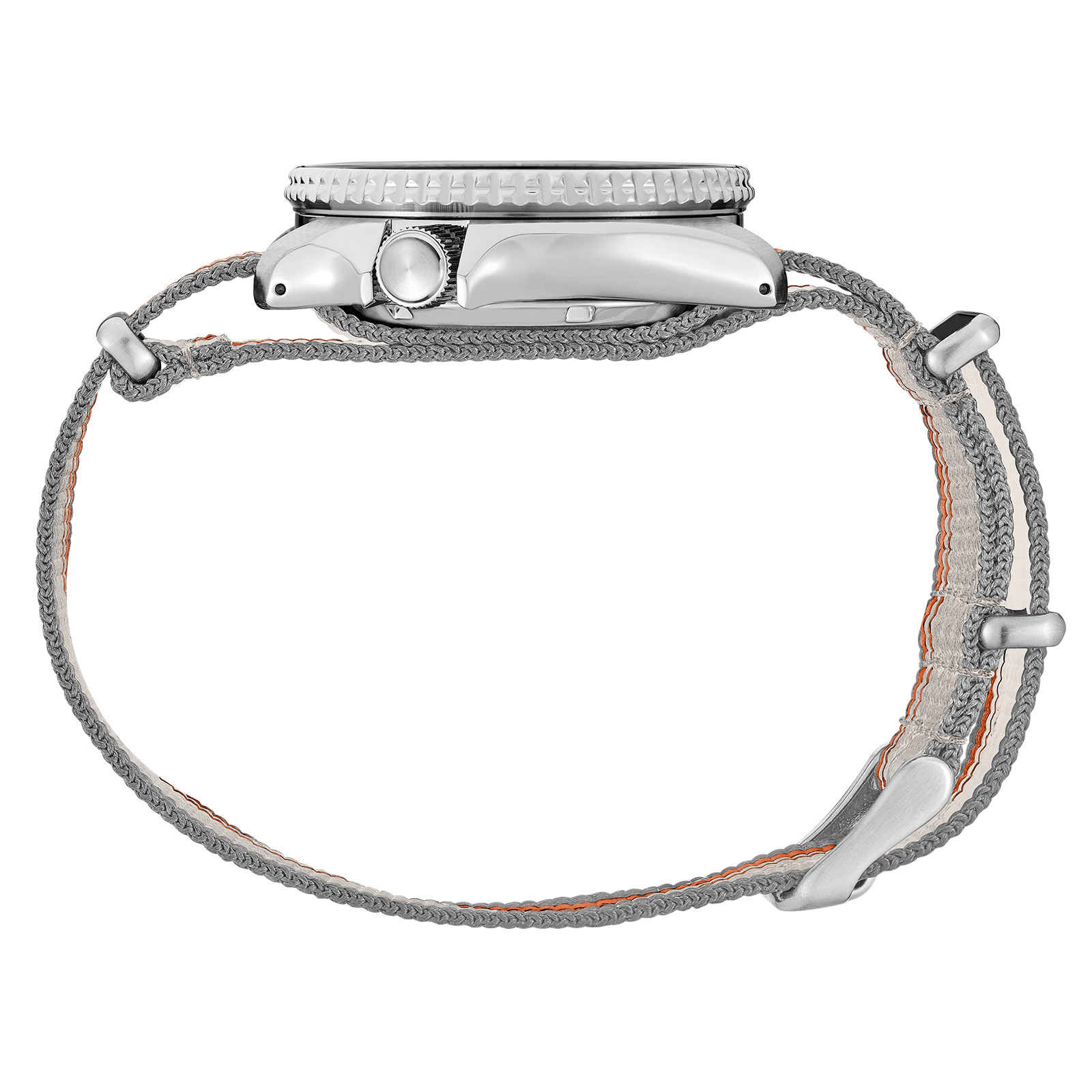 - Light Gray and Orange Striped Nylon Strap
